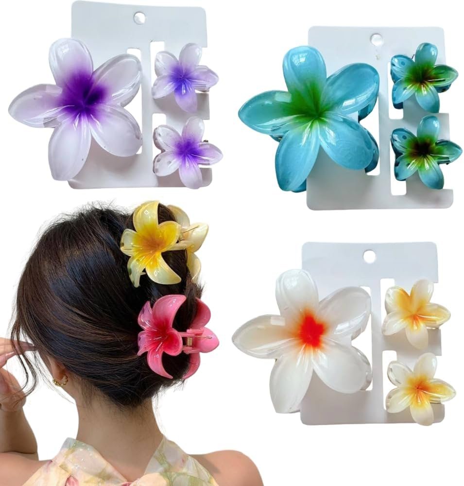 Triple the charm with our coordinated floral sets. This 3-piece collection features our viral plumeria-inspired flower clips in a stunning variety of sizes and colors. Each set is carefully curated to give you the perfect accessory for every hairstyle—whether you’re styling a mother-daughter matching look or simply need different sizes for full updos and half-up styles.